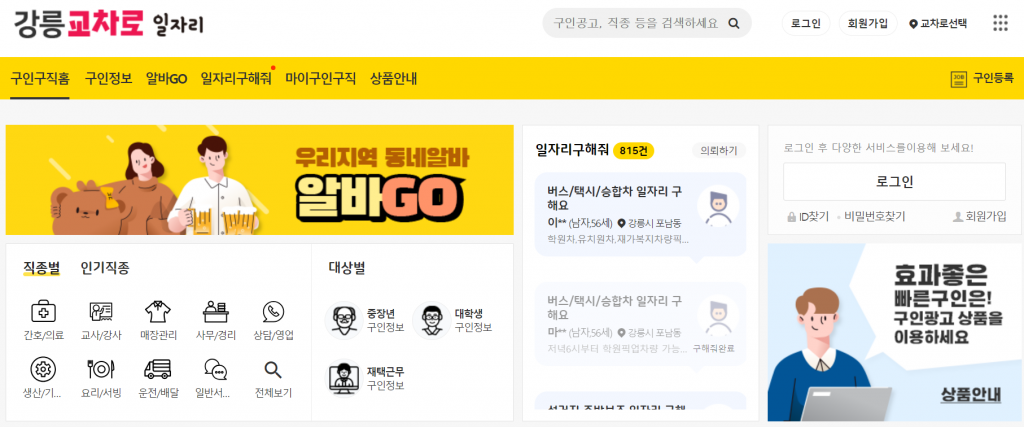 위 링크를 방문하면, 사용자 친화적인 디자인으로 개편된 최신 홈페이지를 확인할 수 있습니다. 과거의 딱딱한 이미지에서 변화하여, 보다 부드럽고 친근한 인터페이스를 제공합니다. 여기서는 직종별, 인기 직종별, 나이별 등 다양한 분류를 통해 사용자가 원하는 기회를 더욱 쉽고 빠르게 찾을 수 있게 도와줍니다.
