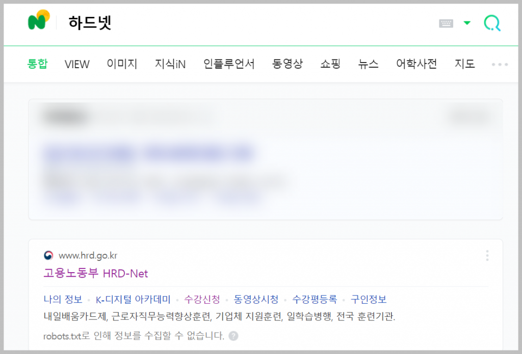 네이버에서 '하드넷'을 검색하면 첫 번째 결과로 해당 사이트에 접근할 수 있습니다. 또는 '직업훈련포털' 또는 'HRD-Net' 등의 키워드로 검색할 수 있습니다.