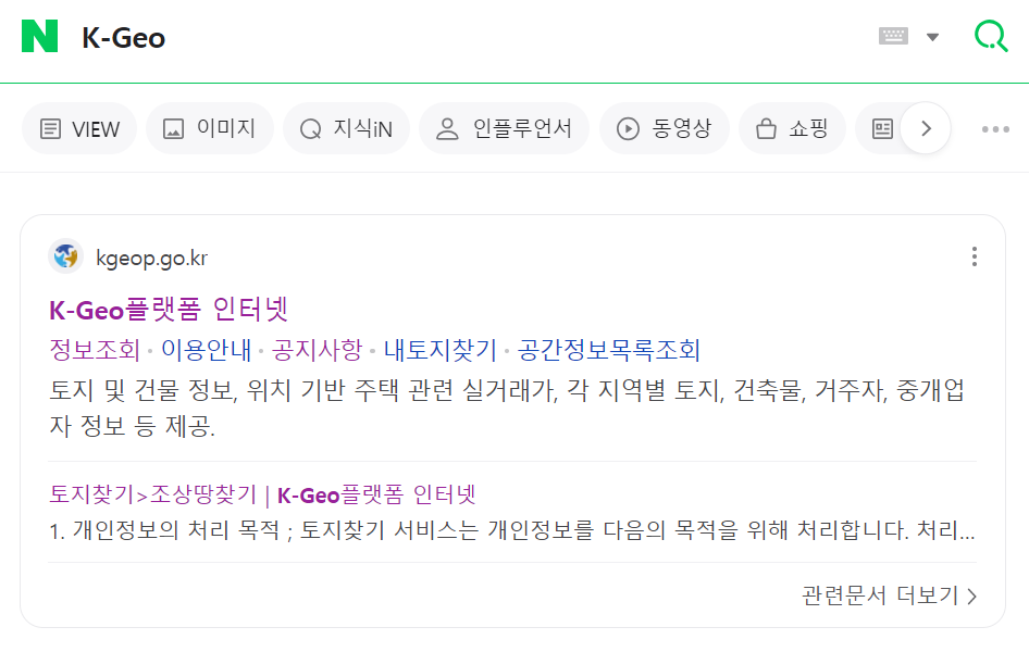 첫째, 먼저 K-Geo사이트에 접속해야 합니다. 네이버나 다음을 통해서도 접속할 수 있으니 편한 방법으로 이용하시면 됩니다.