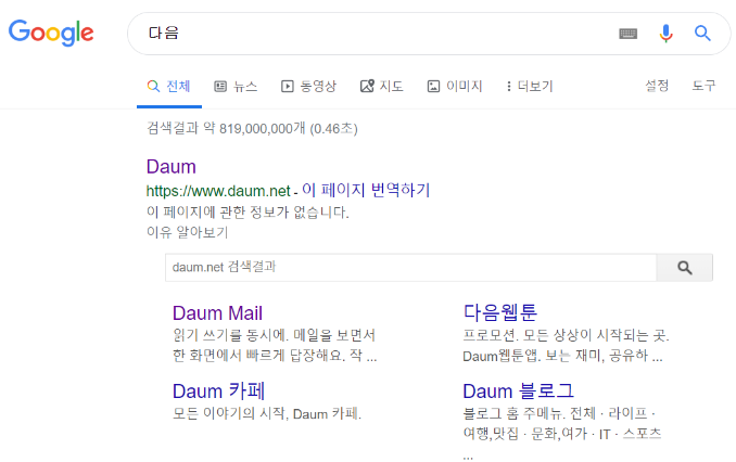 다음넷 바로가기 1 일반적으로 DAUM.net을 바로 가기 위해 포털에서 '다음'을 검색하면 해당 결과가 나옵니다. 네이버에서 검색하면 이와 같은 결과가 나오죠.