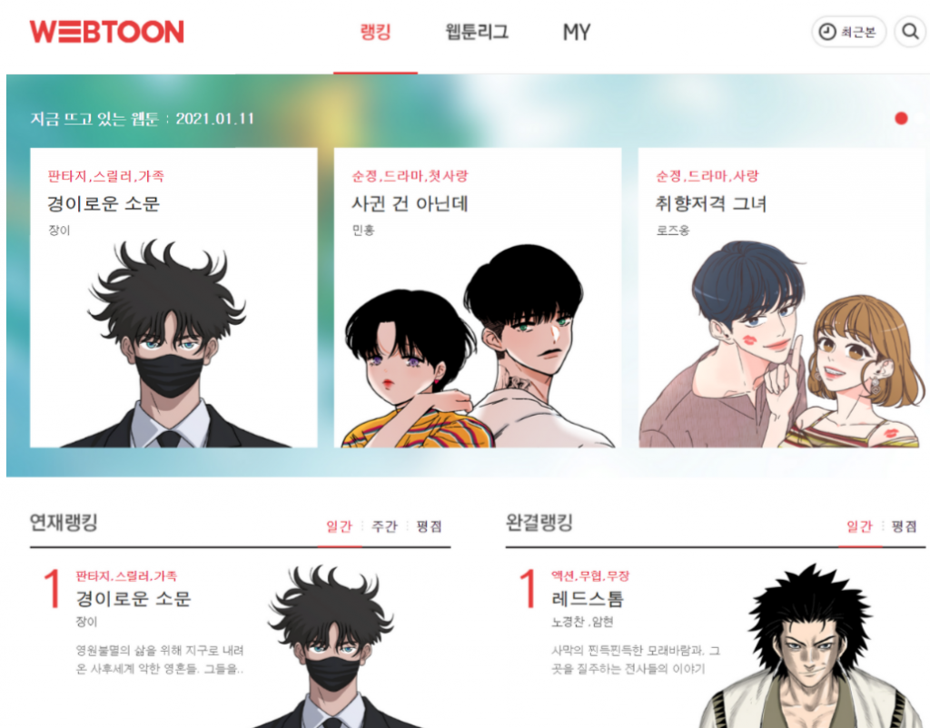 위 링크를 통해 KAKAO WEBTOON을 설치할 수 있습니다. 또한 웹 브라우저를 통해서도 만화를 볼 수 있습니다. 만화를 자주 보지 않는 분들에게는 간단한 웹 브라우저에서 확인하는 것이 편리할 것입니다.