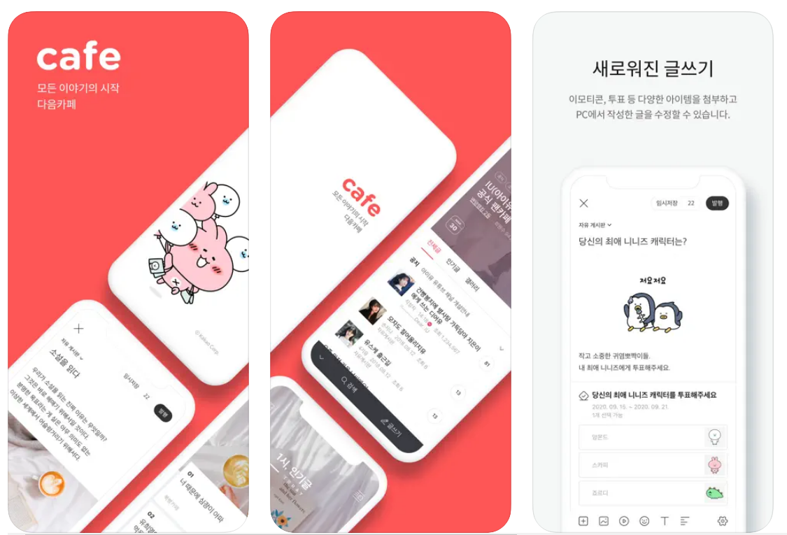 이 링크들을 통해서 카페 어플을 쉽게 이용할수 있습니다. 자동으로 해당 스토어로 연결이 되게 됩니다.