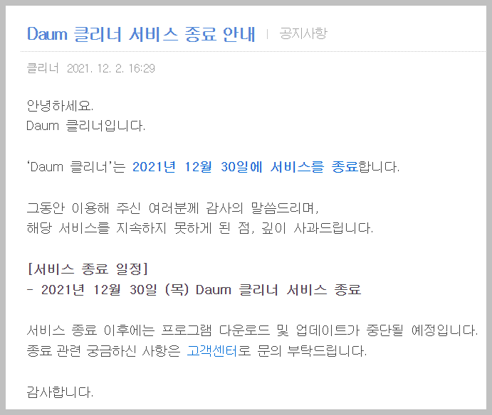 그래도 이상이 있을 경우, '다음클리너'를 설치하여 사용해본 경험이 있습니다. 현재는 이 프로그램이 개발 중단 상태지만, 설치 파일이 인터넷상에 유포되어 여전히 많은 사람들이 사용하고 있습니다. 하지만 최신 윈도우 버전에는 다른 프로그램 사용을 권장드립니다.