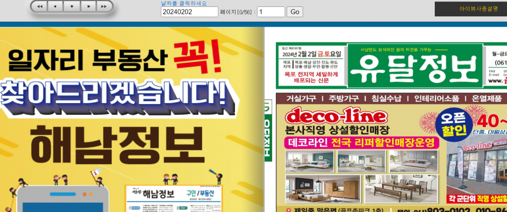해당 홈페이지에 접속하면 위와 같은 모습을 볼 수 있습니다. 이곳에서 우측 화면을 보면 PDF 신문을 제공하는 것을 볼 수 있습니다. '오늘신문보기'를 클릭하면 E북 형태로 신문을 읽을 수 있습니다. 또는 광고를 검색하는 것도 가능합니다.