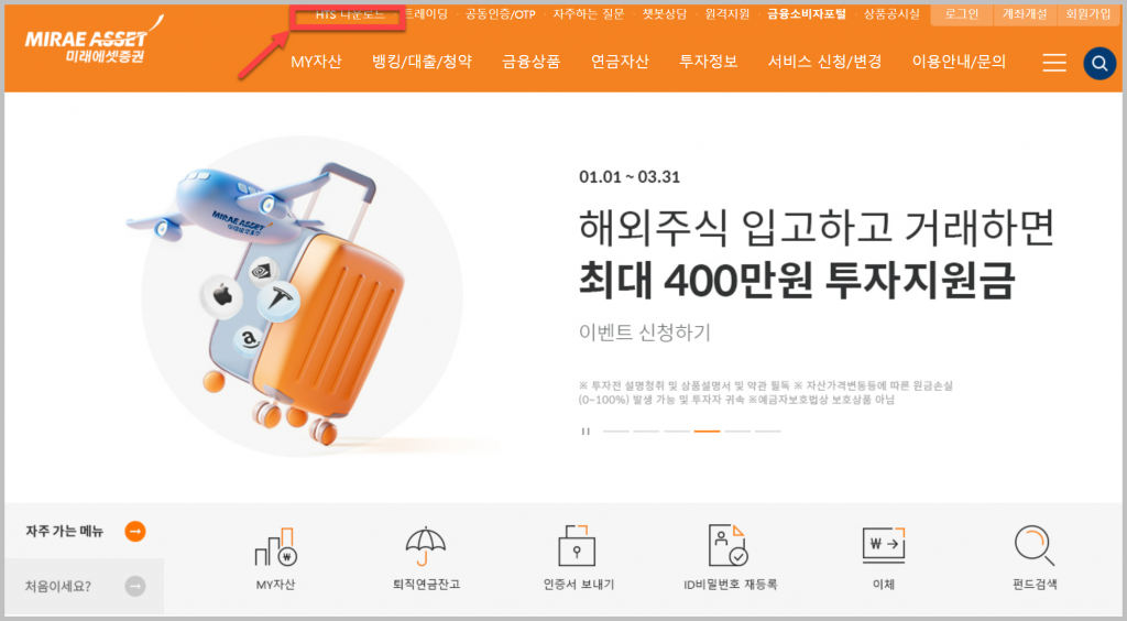 미래에셋대우증권 홈페이지 HTS 방문하기