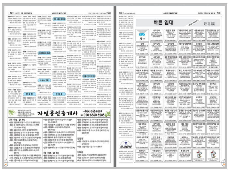 부동산 페이지를 보면 위와 같습니다. 과거와 같은 모습이긴 하지만 한눈에 파악하기에는 조금 어렵기 때문에 차라리 검색기능을 사용하는 것이 조금 더 편리할 것 같다는 생각이 듭니다. 그래도 이러한 생활정보지 신문 그대로의 모습이 좀더 편리한 분들이 계실 것 같아 글을 작성합니다.