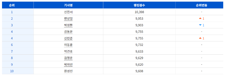 위 링크를 통해 한국 기원에서 제공하는 공식적인 한국 내 프로 기사들의 순위입니다. 역시나 특정 점수산출법을 통해 계산 한다고 하는데 저는 어려워서 가져오지 않았습니다. 그래도 공식적인 기관이고 매달 점수를 내고 있는 것 같기 때문에 충분히 믿을만 하다고 생각됩니다.