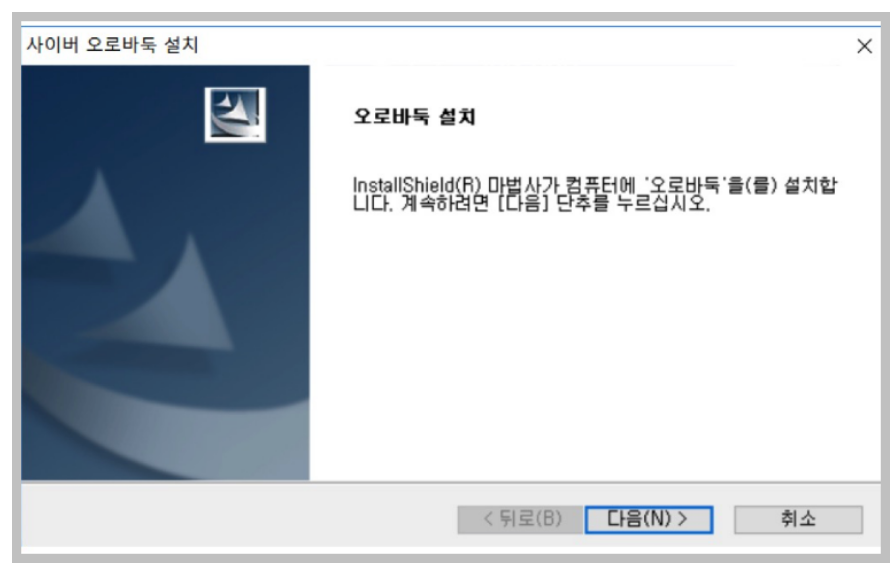 실행 또는 저장을 클릭하면 다음과 같이 오로바둑 설치 안내창을 확인할 수 있습니다. 지금부터 다운받을 위치를 설정한 후, 다음만 계속 클릭하면 오로바둑을 설치할 수 있습니다.