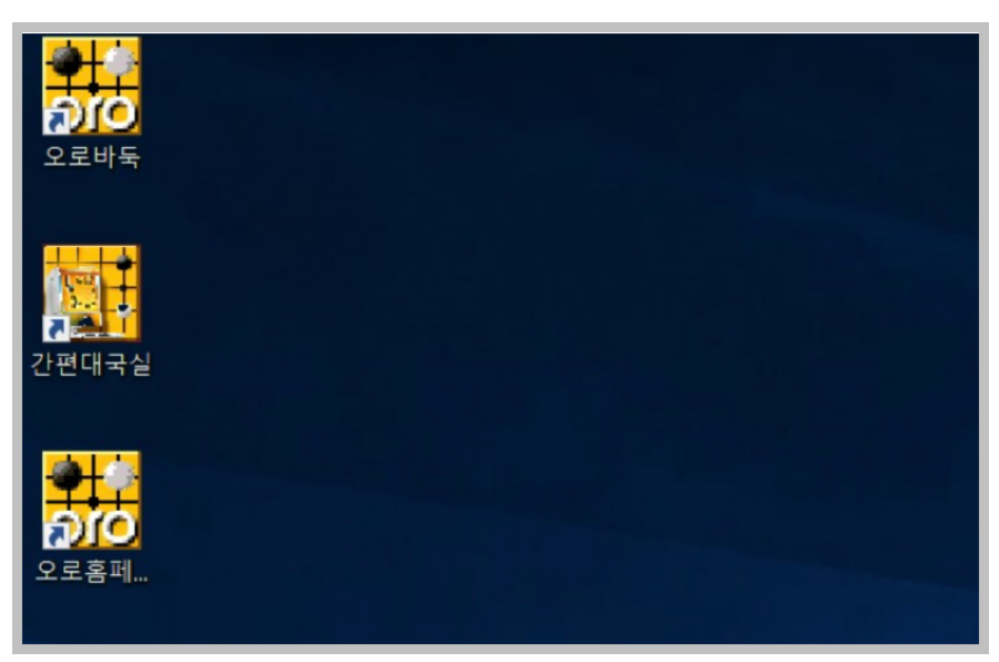 위와 같이 바탕화면에 오로바둑 홈페이지, 간편대국실, 오로바둑이 설치되었다면 설치가 완료된 것 이므로 바둑게임을 즐기면 됩니다.