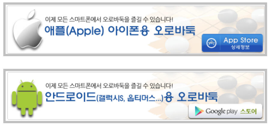 오로바둑은 컴퓨터 바둑 서비스 외에도 모바일 서비스를 함께 제공하고 있습니다. 예전에는 안드로이드만 오로바둑이 가능했으나 현재는 아이폰, 아이패드까지 가능하다고 합니다. 해당 서비스를 이용하기 위해서는 각자의 스토어에 들어가서 다운로드를 하시면 됩니다. 하지만 많은 사람들은 어플을 통해서 이용을 하기보다는 아직까지는 컴퓨터를 통해서 하고 있는것 같습니다.