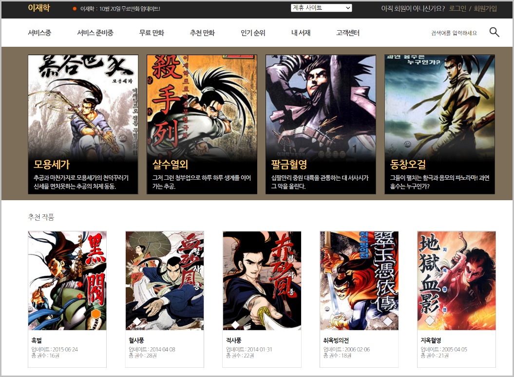 위 사진 처럼 이재학 만화가는 본인 만화 사이트를 갖고 계십니다. 이 사이트는 이재학 작가의 만화를 거의 볼 수 있는 것 같습니다. 검신검귀도 있는 것 같네요, 위 링크를 통해 접속할 수 있으니 이재학 작가의 작품을 보고싶다면 들어가서 보는 것을 추천드립니다.