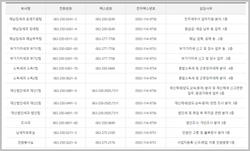 전주 세무서 민원실 전화번호