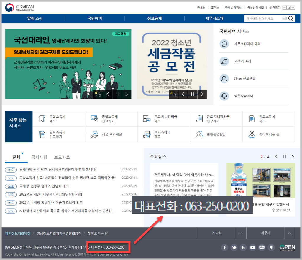 전주세무서 민원실 전화번호