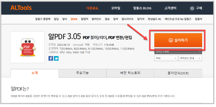 오늘 소개해드릴 프로그램은 알툴즈에서 개발한 ALPDF 입니다. 알PDF뷰어는 PDF를 다양한 포맷으로 변환할 수 있고, 파일을 합치거나 용량을 줄이는 등 자유롭게 수정하고 편집할 수 있는 프로그램입니다.