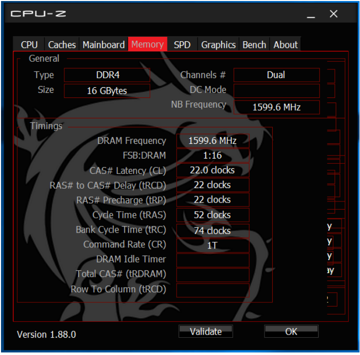 CPU-Z을 설치한 후 'Memory' 탭을 확인하면 위 사진과 같이 설치된 램의 세부 정보를 볼 수 있습니다. 이 것을 사용하면 현재 램의 설정이나 종류, 레이턴시와 같은 정보 까지 볼 수 있으나, 잘 모르는 분들은 기본 시스템만 봐도 충분할 것 같습니다.