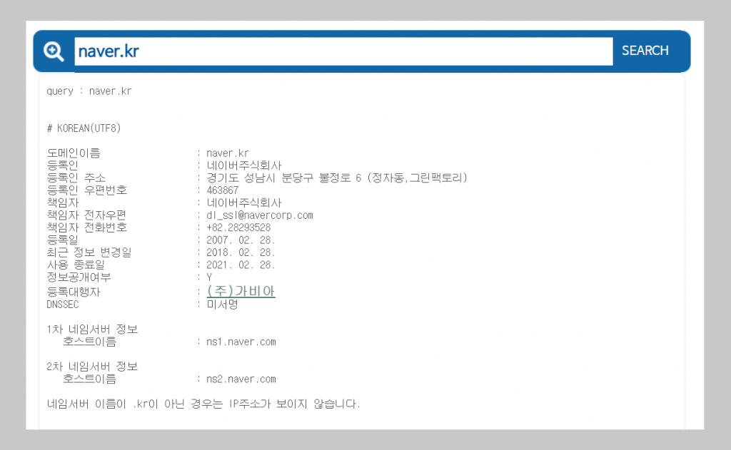 네이버의 주소는 처음부터 www.naver.com 하지만 동시에 www.naver.co.kr과 같은 다양한 주소를 통해서도 접속할 수 있습니다. 그말인 즉 .com 또는 .co.kr로 검색을 해도 동일한 결과를 얻을 수 있다는 것 입니다.